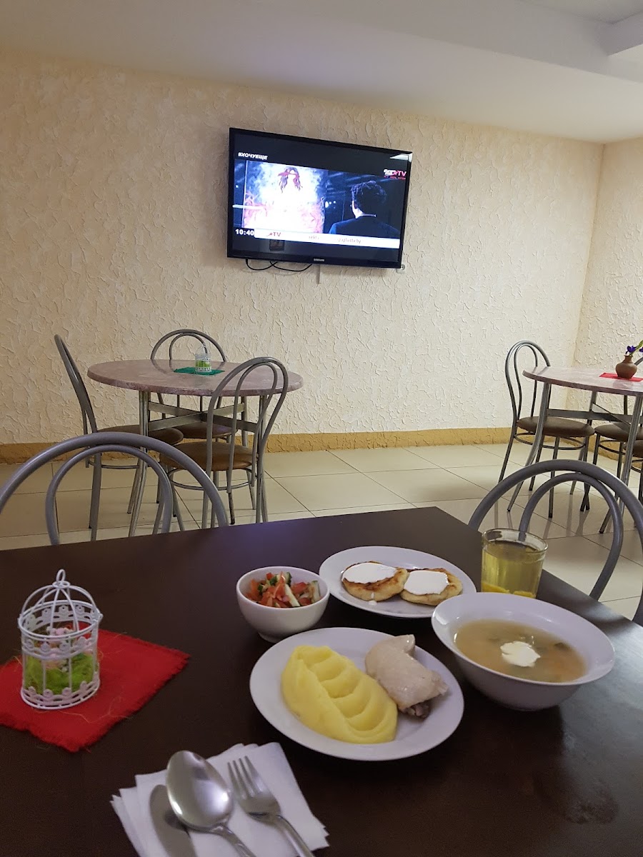 As you step into this charming café, you’ll be enveloped by a warm ambiance marked by beautifully arranged tables, vibrant wall art, and a friendly vibe. The dining area is both tidy and comfortable, making it an ideal spot for a quick meal or casual gathering with friends. A TV playing music adds to the relaxed setting. All of this can be enjoyed at an astonishingly affordable price point, making Stolovaya Rayispolkoma a favorite among both locals and visitors alike.